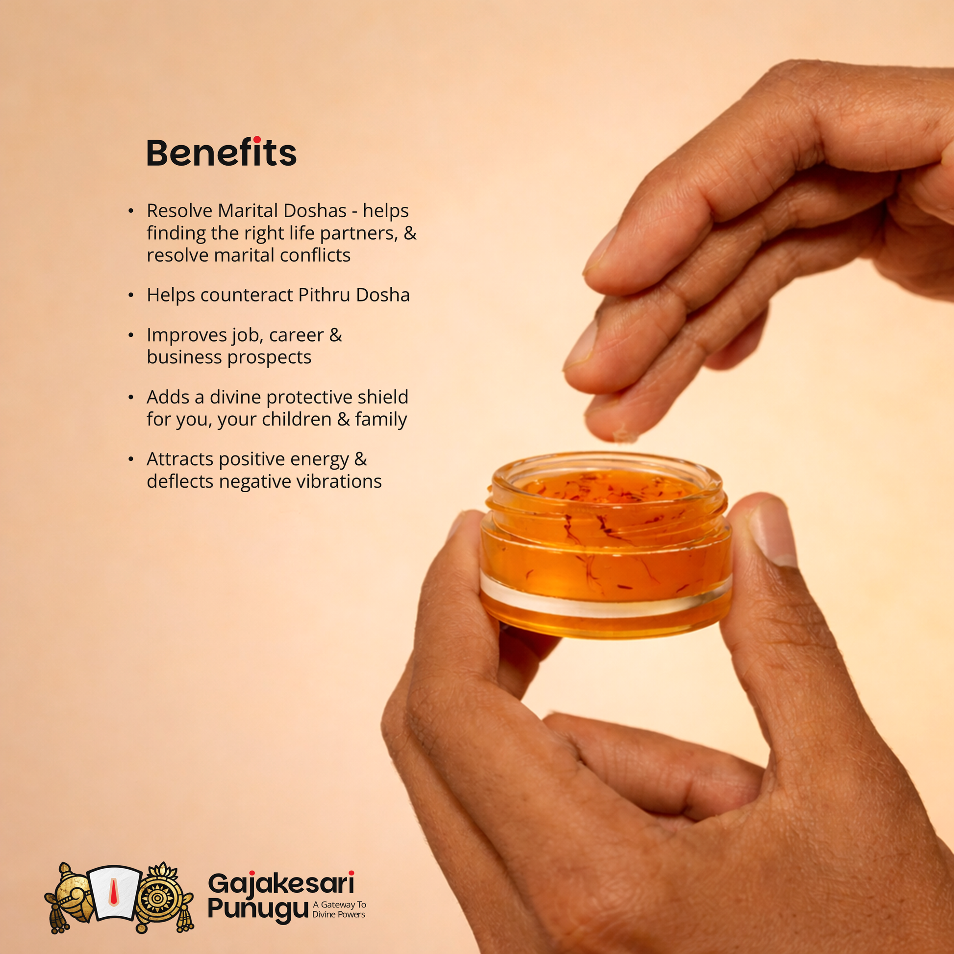 Apply a small amount of Gajakesari Punugu as tilak on the forehead after bath.